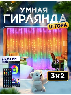 Умная гирлянда Smart штора на окно 3х2 метра на usb
