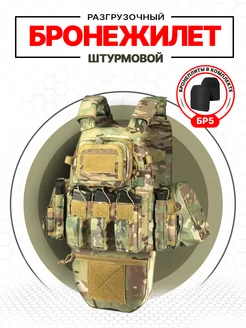 Бронежилет тактический штурмовой с плитами БР5 мультикам