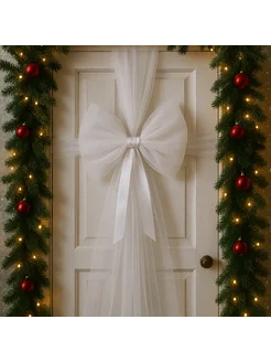 Большой белый бант на дверь