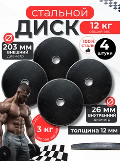 Блины стальные спортивные для штанги и гантель 3кг 26мм4шт