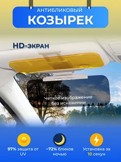 Антибликовый солнцезащитный козырёк для автомобиля 2 в 1