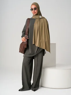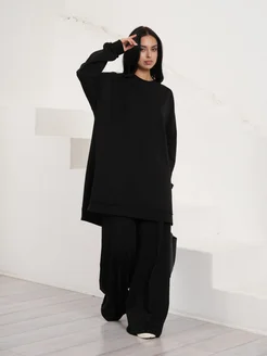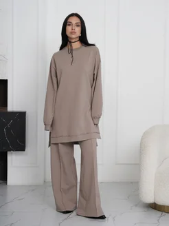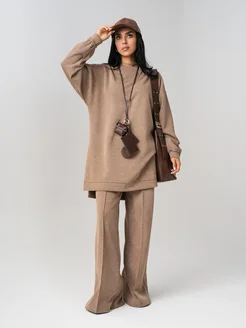 Костюм брючный оверсайз бежевый трикотаж Осень