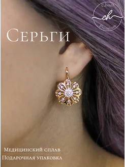 Изящные серьги с фиолетовыми камнями, бижутерия