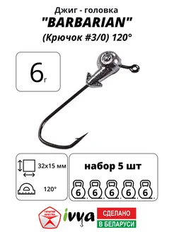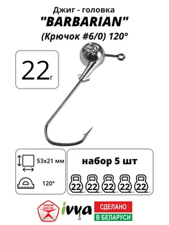 Джиг-головка BARBARIAN № 6 0 120° 53 мм. 22 г. 5шт