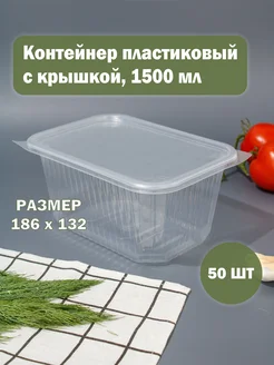 Контейнеры одноразовые с крышкой 1500 мл, 50 штук