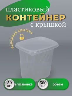 Контейнеры одноразовые с крышкой 500 мл, 50 штук