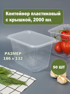 Контейнеры одноразовые с крышкой 2000 мл, 50 штук