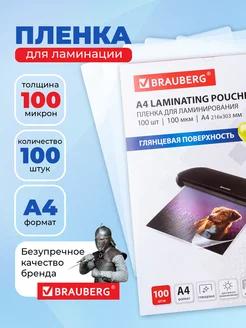Пленка для ламинирования А4, толщина 100 мкм, 100 шт