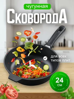 Блинная сковорода чугунная для блинов, блинница 22 см