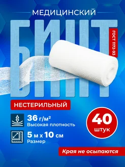 Бинт медицинский не стерильный 5м х 10см 36 г м2 (40 шт)