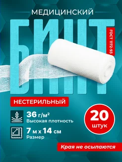 Бинт медицинский не стерильный 7м х 14см 36 г м2 (20 шт)
