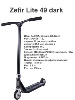 Самокат трюковой Zefir Lite 49 dark