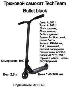 Самокат трюковой TechTeam Bullet black