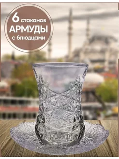 Стаканы турецкие стеклянные армуды с блюдцами набор 6шт