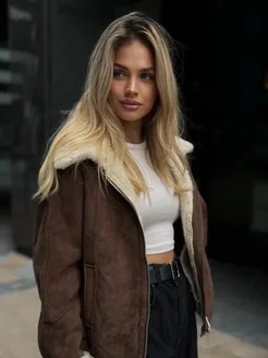 Дубленка авиатор куртка зимняя оверсайз