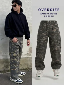 Джинсы камуфляж Y2K милитари широкие оверсайз бочки багги