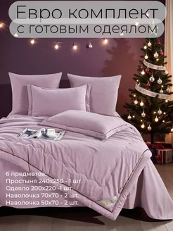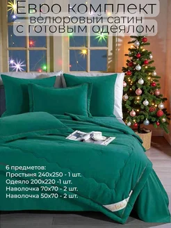 Комплект постельного белья ЕВРО с одеялом, бархатный сатин