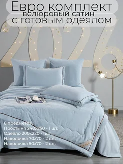 Постельное белье с готовым одеялом Евро, бархатный велюр