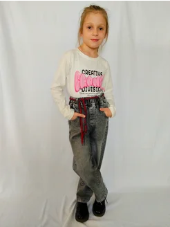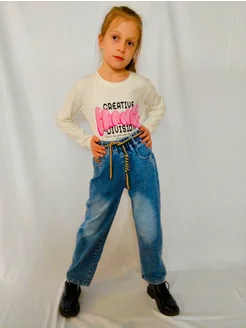 Джинсы багги на резинке подростковые
