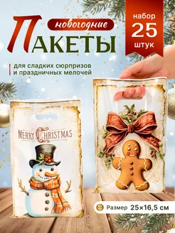 Новогодние подарочные пакеты для упаковки подарков 25 шт