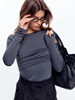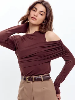 Лонгслив с драпировкой на одно плечо