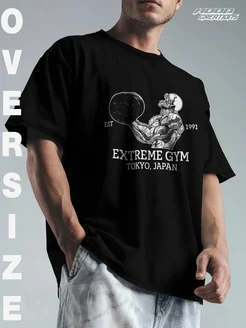 Футболка мужская оверсайз черная для зала с принтом Карнаж