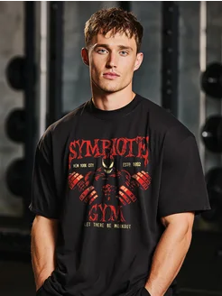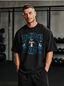 Футболка мужская оверсайз черная для зала с принтом Веном