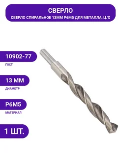 Сверло 13мм по металлу Р6М5, цилиндрический хвостовик 9.5мм