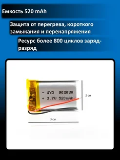 Аккумулятор универсальный 902030 (9*20*30 мм) 520 mAh