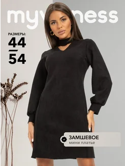 Осеннее офисное замшевое платье мини