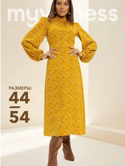 Платье миди с объемными рукавами