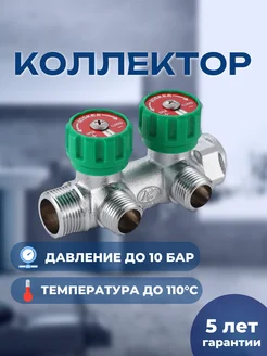 Коллектор для воды 3 4" ВР-НР на два выхода 1 2