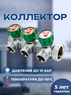 Коллектор для воды 3 4" ВР-НР на три выхода 1 2