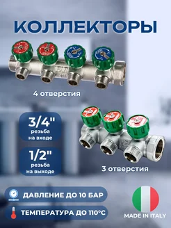 Коллектор для воды 3 4 ВР-НР на четыре выхода 1 2