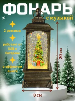 Новогодний музыкальный фонарь с снежинками (светильник)