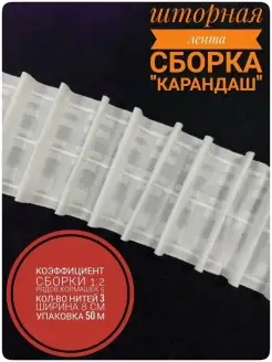 Шторная лента 8 см 50 метров для штор под крючки на карниз