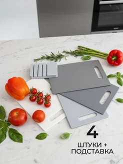 Разделочные доски пластиковые на подставке набор 4 шт