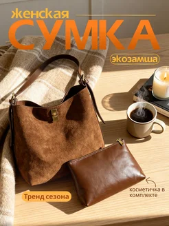 Женская замшевая сумка шоппер с косметичкой