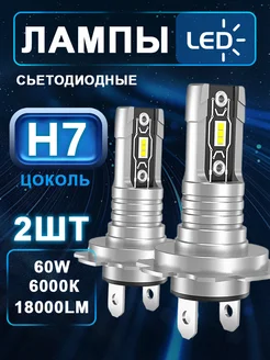 Лед лампы H7 led очень яркий белый свет 6000к, 2 шт