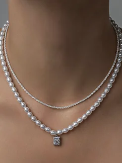 Жемчужное ожерелье бусы колье с кулоном чокер