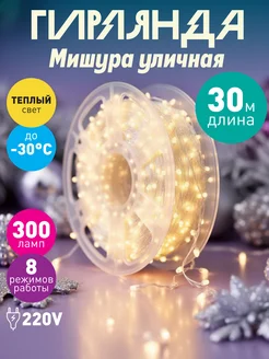 Гирлянда интерьерная уличная мишура роса 30 метров 300 ламп