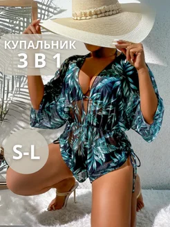 Купальник раздельный на завязках 3 в 1 с накидкой