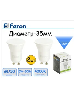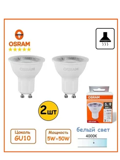 (2шт) Лампа светодиодная GU10 5W 4000K, белый свет