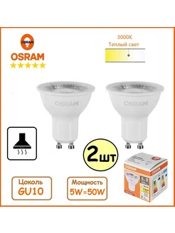 (2шт) Лампа светодиодная GU10 5W 2700K, теплый свет