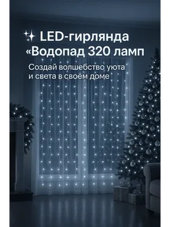Светодиодная гирлянда штора водопад 3×2 м холодный белый