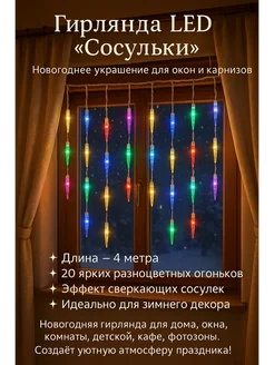 Гирлянда сосульки LED цветная 4 м для дома и ёлки