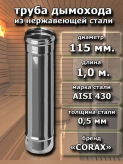 Труба дымохода из нержавеющей стали 115 мм. (L-1.0 м.)