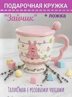 Подарочная кружка «Зайчик» в комплекте с крышкой и ложкой