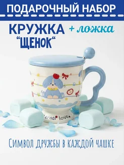 Подарочный набор кружка с крышкой и ложкой «Щенок»