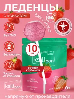 Леденцы на палочке без сахара с ксилитом, клубника, 10 шт